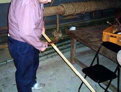 GWも終わり、三区ではいよいよ今日からが製作本番となりました!今日は雨でしたが、たくさんのメンバーが集まりました。 まずは、組み上げにはいる前の下ごしらえ。 使いやすい大きさに切り分け、組み上げ時に怪我などないように、一つずつ丁寧にささくれや節を落としていきます。
