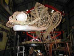 鼻の裏側に、ひげを取り付ける骨組みが出来上がりまして、さあ、本日よりいよいよ紙貼りとなりました! 今日は上あごと、鼻の穴に紙が貼られました。